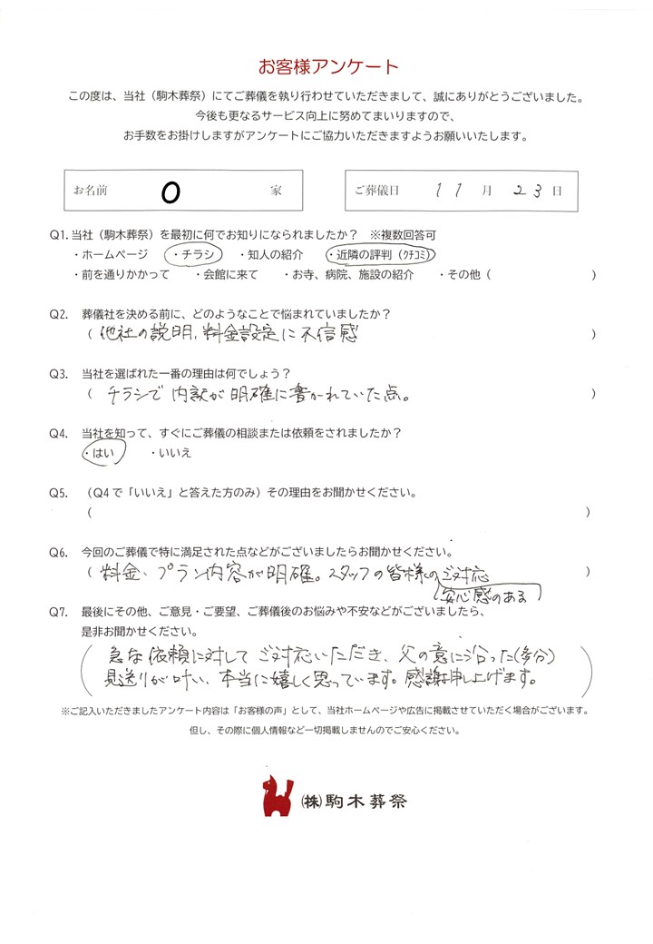 盛岡市 O様 | 盛岡市の葬儀・家族葬なら駒木葬祭