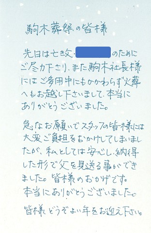 盛岡市 O様 | 盛岡市の葬儀・家族葬なら駒木葬祭