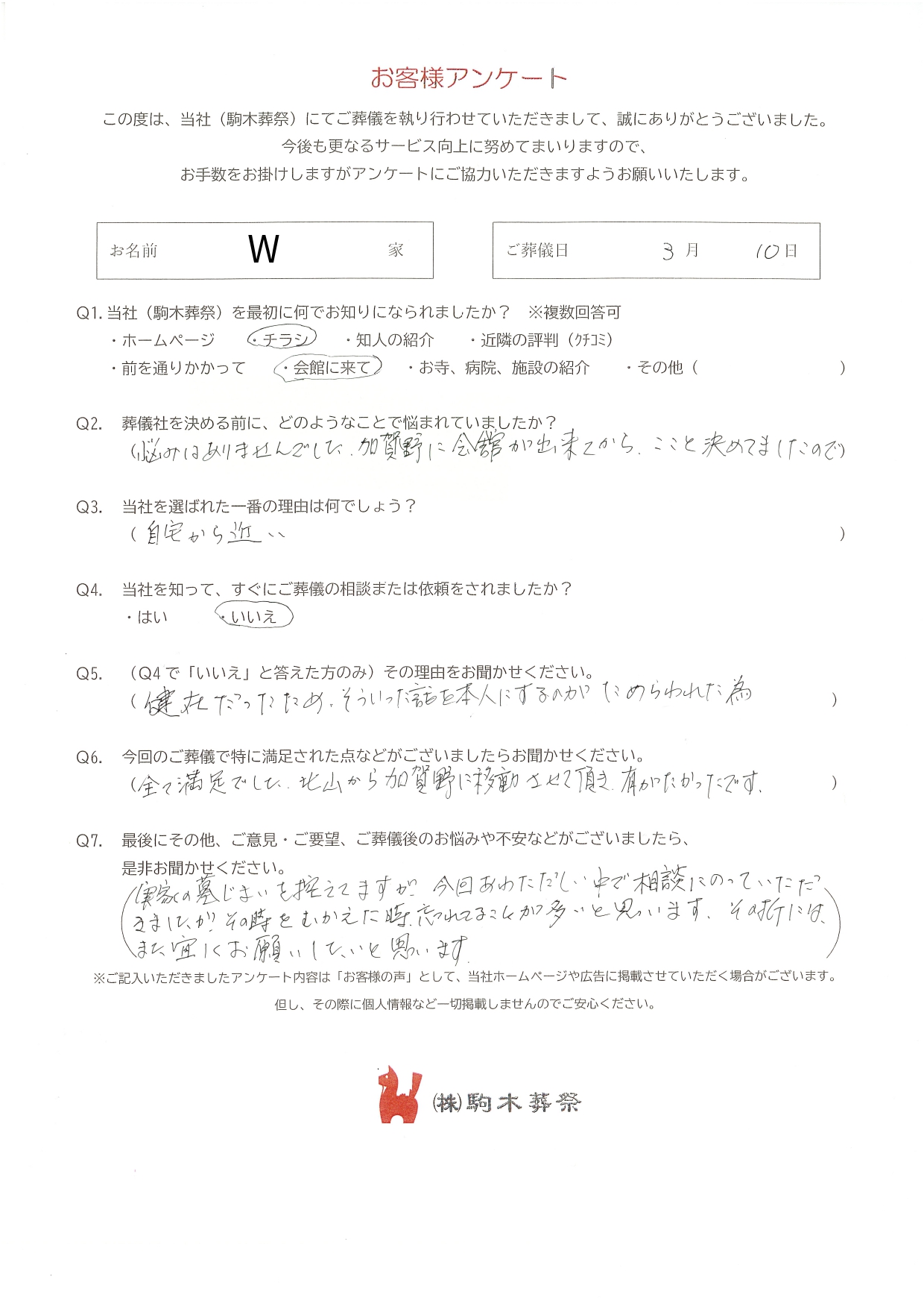 盛岡市 W 様 | 盛岡市の葬儀・家族葬なら駒木葬祭